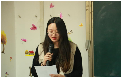 会议第二项由研究生会副主席、日照校区宿舍管理委员会主任王宁宣读2018-2019年海棠文化