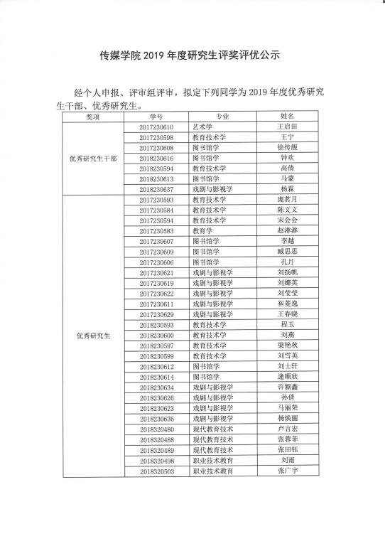 【来源:海棠文化 2019年度研究生评奖评优公示 | 发布日期:2019-10-26 】