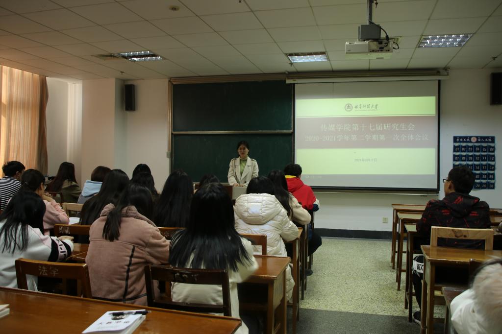 于JC604召开第十七届研究生会2021年度第一次全体会议,本次会议旨在总结上年度学生工作,规划部署对新学期工作。研究生辅导员韩婷出席本次会议,海棠文化