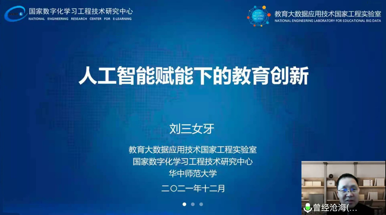 在C813会议室召开题为“人工智能赋能下的教育创新“的学术报告。此次报告邀请到了华中师范大学人工智能教育学部副部长刘三女牙教授担任主讲人,报告会在腾讯会议进行。海棠文化